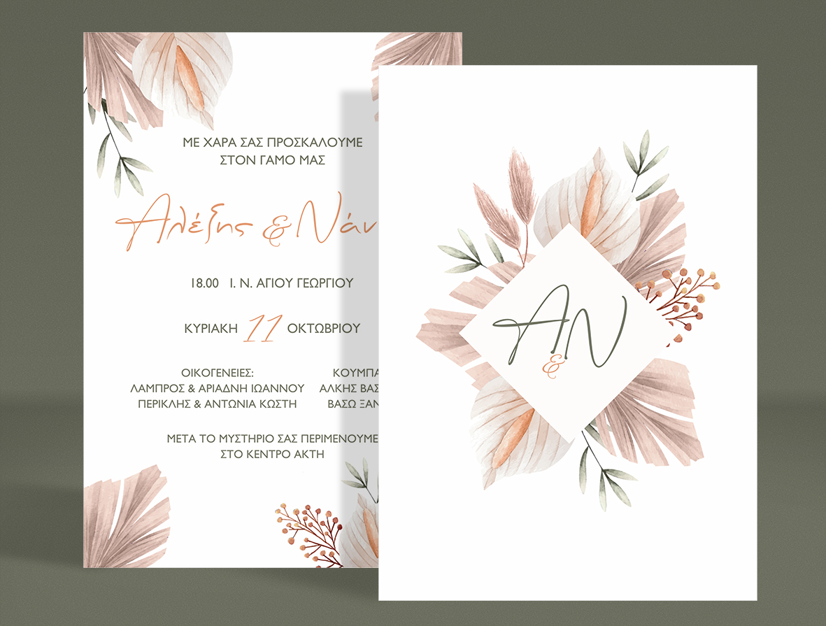 Πρόσκληση γάμου δύο όψεων. Η τιμή αφορά ελάχιστη ποσότητα 100 τεμαχίων.